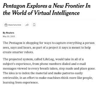 per tracciare “l'intera esistenza” di una persona online. Non è chiaro cosa sia successo, ma il progetto fu chiuso il 4 febbraio 2004.