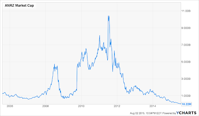 Tuttavia, nei mercati completamente rotti e falsificati dalla manipolazione e dalla repressione delle banche centrali, i fast money trader non sanno nulla e accettano fideisticamente “l’azione dei prezzi” di breve periodo e i punti nei grafici. Nel caso di ANZR, questo ha portato all’inizio del 2011 ad una valutazione del 29X del suo flusso di cassa da $380 milioni.