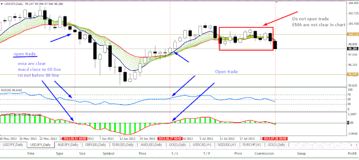 Puoi dare profitto a 1 o 3 o 1 a 2. stop iniziale sull'ultimo punto di svolta, Oppure è possibile chiudere il commercio quando la candela si chiude all'interno dell'area di ema.