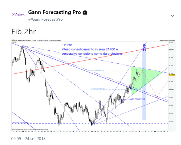 Il successivo rimbalzo si è poi scontrato con l'angolo intermedio a 21500 in concomitanza con la scadenza ciclica del 25/9, che in un solo giorno ha riportato l'indice verso i minimi di periodo.