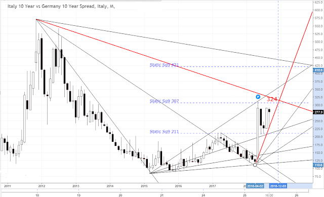 Nella migliore delle ipotesi il tasso potrebbe consolidare nel range Sq9 [2,73%-3,43%] ma l'impostazione è al rialzo con target potenziale stimato tra 4,20% e 4,50% entro aprile 2019.