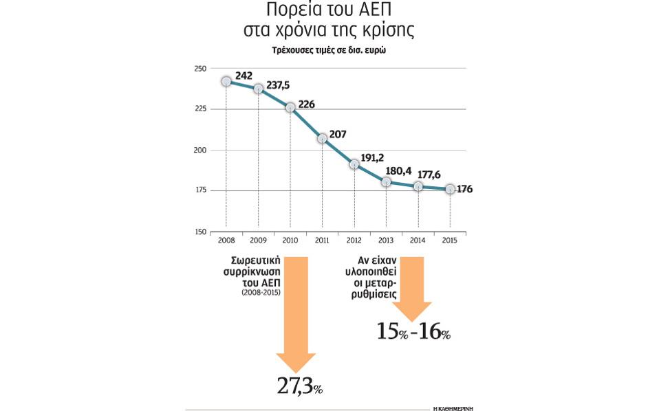 Se la Grecia ha applicato le riforme nel tempo, l'economia greca sarebbe "salvare" circa 18 miliardi di euro dal totale 66 mld di euro 'perso' PIL durante il periodo 2008-2015...