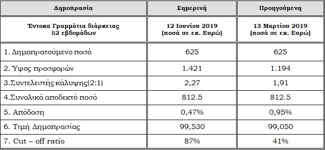In particolare, si è tenuta un'asta di tasso di interesse di 52 settimane di 625 milioni di euro.