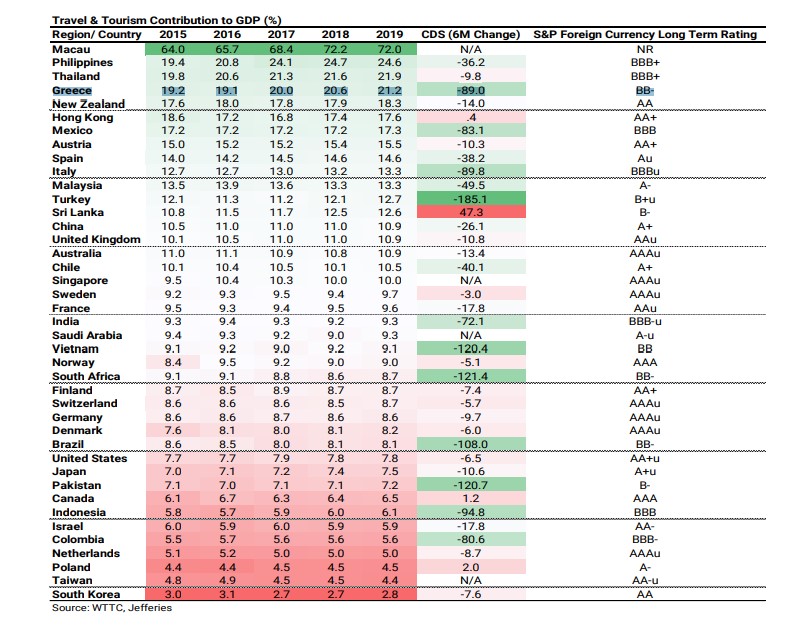 In questi paesi, l'azienda colloca la Grecia, con il suo settore bancario che dovrebbe beneficiare in modo particolarmente forte del ritorno del turismo che inizierà con la diffusa disponibilità di vaccini. Il nostro Paese, infatti, è al quarto posto a livello internazionale in quanto secondo i dati raccolti da Jefferies, il contributo del turismo e dei viaggi al PIL si aggira intorno al 21,2%. La Grecia è preceduta da Macao, Filippine e Thailandia, mentre la Grecia è seguita da Nuova Zelanda, Hong Kong, Messico, Austria, Spagna e Italia.