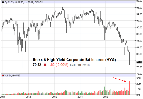 La conseguenza è che quindi molte aziende del settore del “Shale Oil” negli USA, sono andate in fibrillazione. Le vendite su tutto il settore degli High Yield sono state copiose come NON mai. Ma come sempre, preferisco illustrare con dei grafici quanto dico, comprovando coi fatti.