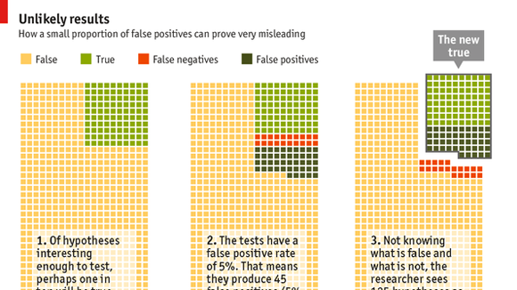 The most enlightened journals are already becoming less averse to humdrum papers. Some government funding agencies, including America’s National Institutes of Health, which dish out $30 billion on research each year, are working out how best to encourage replication. And growing numbers of scientists, especially young ones, understand statistics. But these trends need to go much further. Journals should allocate space for “uninteresting” work, and grant-givers should set aside money to pay for it. Peer review should be tightened—or perhaps dispensed with altogether, in favour of post-publication evaluation in the form of appended comments. That system has worked well in recent years in physics and mathematics. Lastly, policymakers should ensure that institutions using public money also respect the rules.