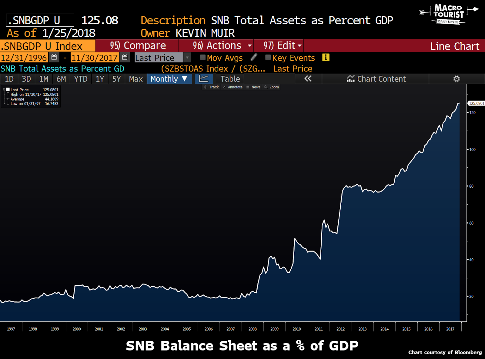 La Banca Nazionale Svizzera si è praticamente scavata una fossa dalla quale sarà estremamente difficile emergere. Infatti essa, per stare dietro ai miti mercantilisti/keynesiani, ha accatastato nel proprio bilancio più di $100 miliardi di azioni statunitensi. E sin dalla grande crisi finanziaria del 2007, la BNS ha portato le dimensioni del proprio bilancio dal 20% del PIL fino al 125%. Cosa pensate che accadrà quando il mercato azionario USA finirà sotto stress? Non a caso è stato scelto l'esempio della Svizzera, come luogo in cui il rigore e la serietà si presume siano di casa.
