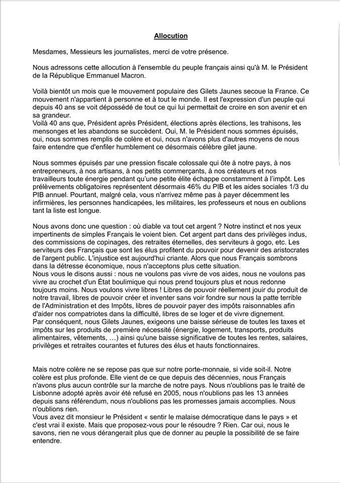 Circa 100.000 persone [hanno bloccato] le strade a pagamento, le stazioni di servizio e gli incroci creando gravi e problemi ai trasporti e ai grandi centri commerciali. La protesta si sta dimostrando estremamente difficile da disinnescare, dal momento che non c'è un particolare leader con cui negoziare. »