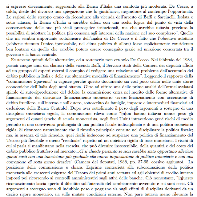 Ed è da questa fissità dei cambi, sempre voluta dall'€uropa federale e dell'economia sociale di mercato, che discendevano gli alti costi del deficit e del debito pubblico, che provocarono, da subito, un tale onere da indurre, nel 1984, la formazione di una commissione parlamentare di indagine sul debito pubblico dentro lo SME e a seguito del divorzio tesoro-Bankitalia.