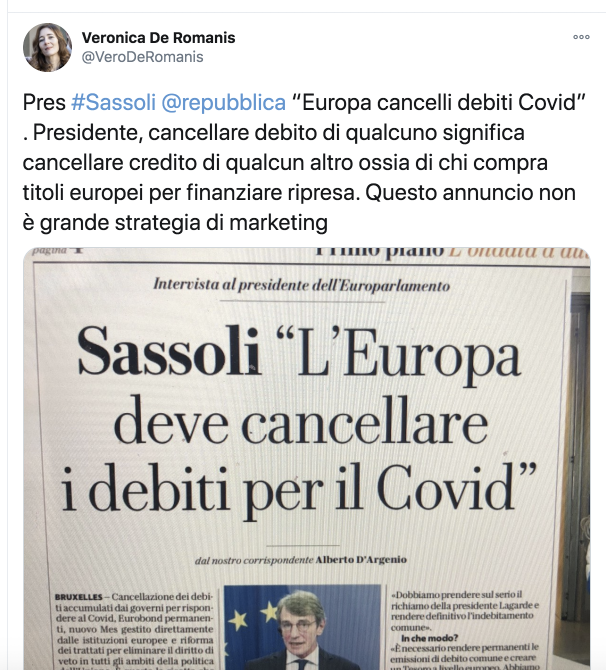 È forse questo il motivo per cui nessuno sta chiedendo di procedere alla complessa revisione dei trattati per anelare ad una cancellazione del debito pubblico.