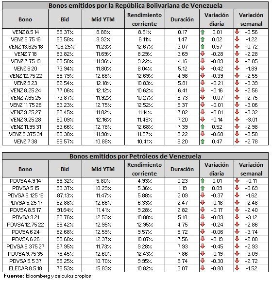 Reporte bonos venezolanos 04 de agosto 2014