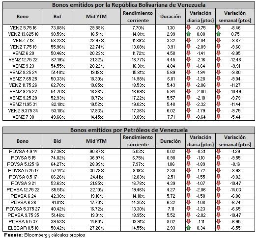 El Pdvsa 2035 ofrece actualmente un rendimiento de 19%, superando así los niveles de 16.54% que alcanzó en febrero de este año.